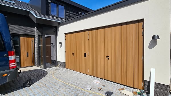 Voor deze exclusieve woning koos Aannemingsbedrijf Van der Windt voor de NewTechWood Teak Varibo gevelbekleding in drie breedtes: 45, 64 en 119 mm. Het geheel is gemonteerd op het Grad-systeem, waarbij de schroeven uit het zicht blijven en de latten kaarsrecht gemonteerd worden.