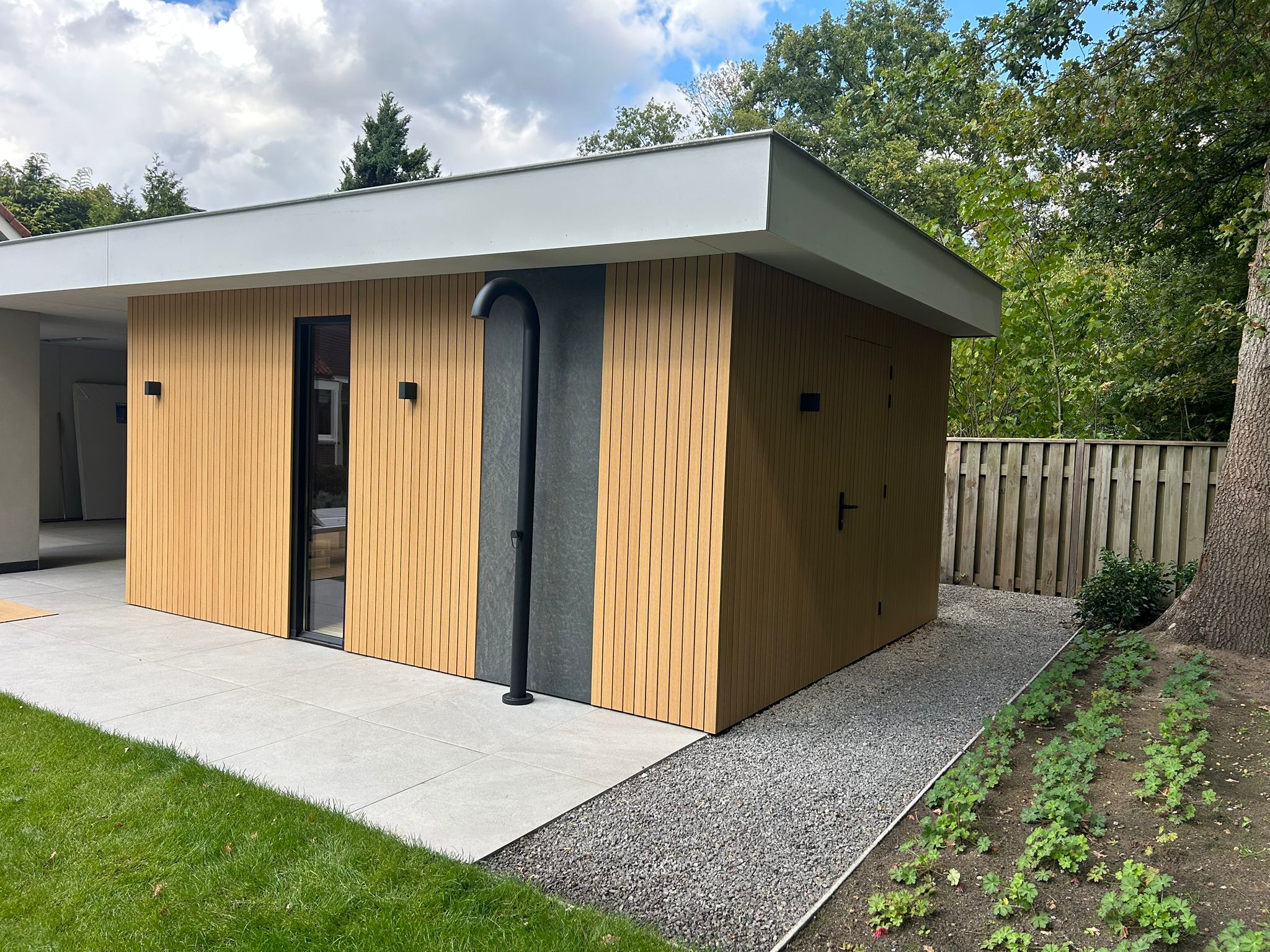Vossenberg Timmerwerken realiseerde de vlonder en gevelbekleding met NewTechWood in de kleur Red Ceder. Dankzij het klikbare systeem verliep de montage snel en strak, met een exclusief eindresultaat dat perfect aansluit bij het tuinontwerp.